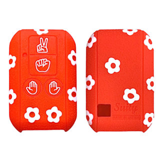 [Designer Edition] スズキ シリコンキーカバー ケース 4ボタン スペーシア ギア キーレス じゃんけん フラワー 赤白