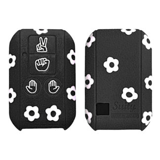 [Designer Edition] スズキ シリコンキーカバー ケース 4ボタン スペーシア ギア キーレス じゃんけん フラワー 黒白