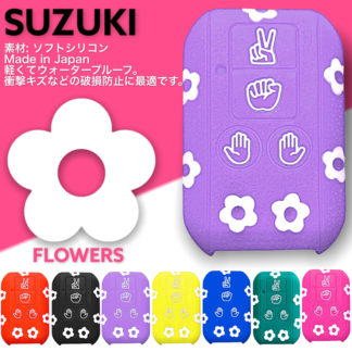 [Designer Edition] スズキ シリコンキーカバー ケース 4ボタン スペーシア ギア キーレス じゃんけん フラワー 紫白